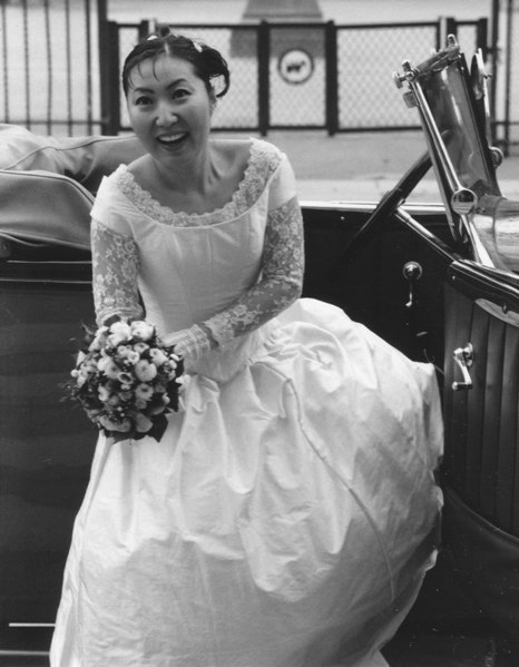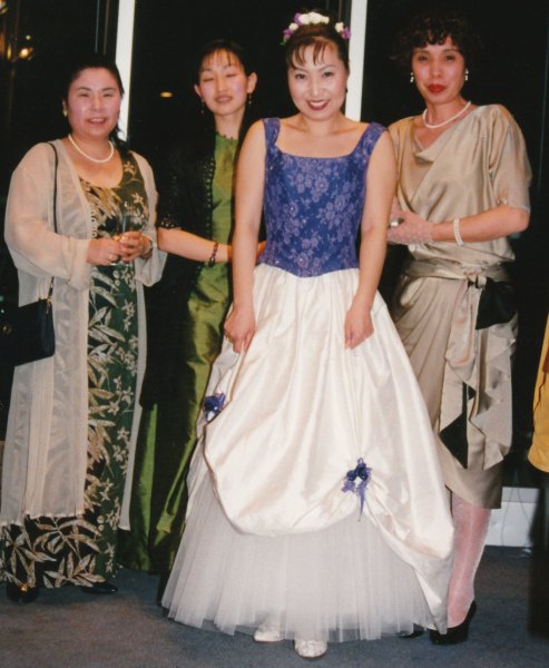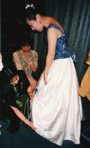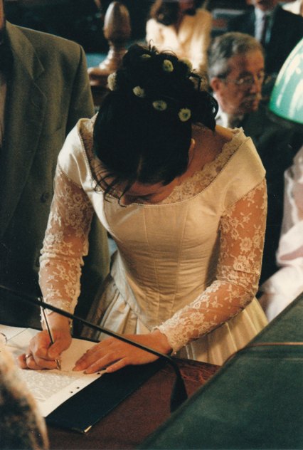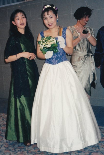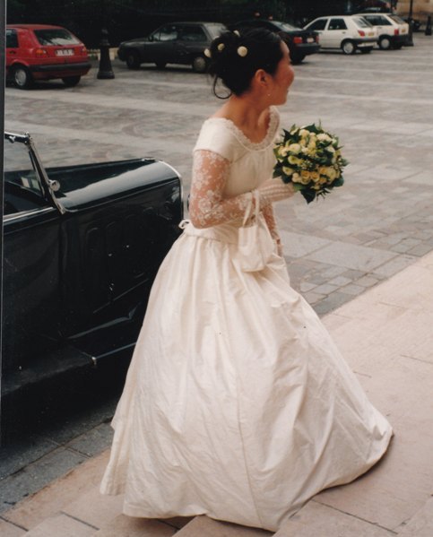 La robe de mariage a été réalisée par Kaori Inoue-Poirier. Elle porte une robe verte ci-dessous.
