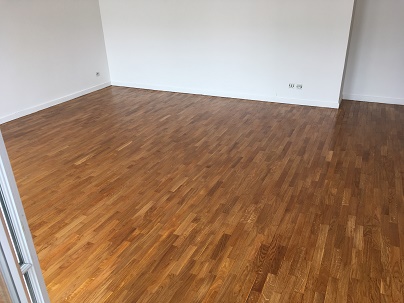 La première étape a consisté à vider entièrement le séjour pour tout repeindre, puis vitrifier le parquet.