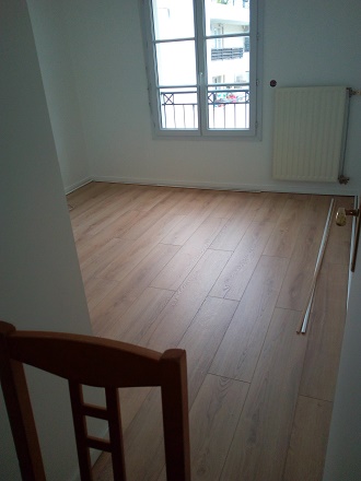 Au fait, le parquet flottant a été remplacé dans tout l'appartement, même si l'assurance ne couvre pas celui de notre chambre.